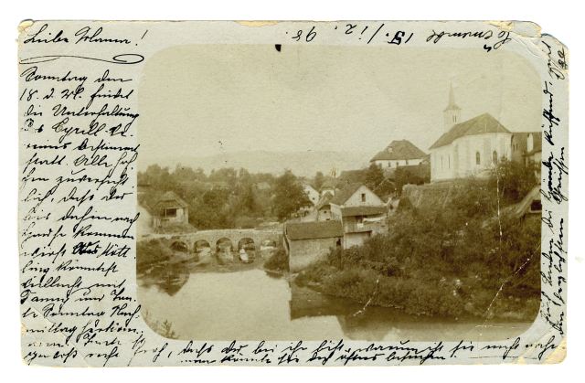 Razglednica je bila napisana in odposlana 15. decembra 1898 iz Črnomlja v Johannesthall (Šentjanž) na Kranjskem. Tja je prispela naslednji dan. Založnik te fotografske razglednice ni znan.