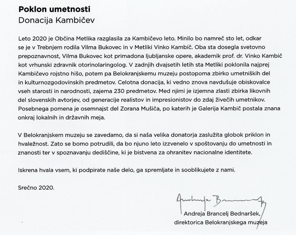 RecepcijaNajava vodenega ogleda za skupine:+386 (0)7 306 33 70 belokranjski.muzej@guest.arnes.siUpravaV. d. direktorja:Kristjan Husič, v. d. direktorja, kustos arheolog+386 (0)7 306 33 72 kristjan.husic@guest.arnes.siTajništvoAna Plut, poslovna sekretarka+386 (0)7 306 33 71 belokranjski.muzej@guest.arnes.siStrokovne službeLeon Gregorčič, samostojni muzejski tehnik dokumentalist+386 (0)7 306 33 73 leon.gregorcic@guest.arnes.siMateja Černič, samostojna strokovna sodelavka+386 (0)7 306 33 74 mateja.cernic1@guest.arnes.siJadranka Dančulovič, muzejska vodnica+386 (0)7 306 33 70Pedagoška službaAlenka Misja, kustosinja pedagoginja+386 (0)7 306 33 76 alenka.misja@guest.arnes.siTehnična službaKristijan Rajaković, glavni vzdrževalec+386 (0)7 306 33 70Galerija KambičCesta bratstva in enotnosti 51, 8330 MetlikaNajava vodenega ogleda za skupine:+386 (0)7 305 83 32 belokranjski.muzej@guest.arnes.si