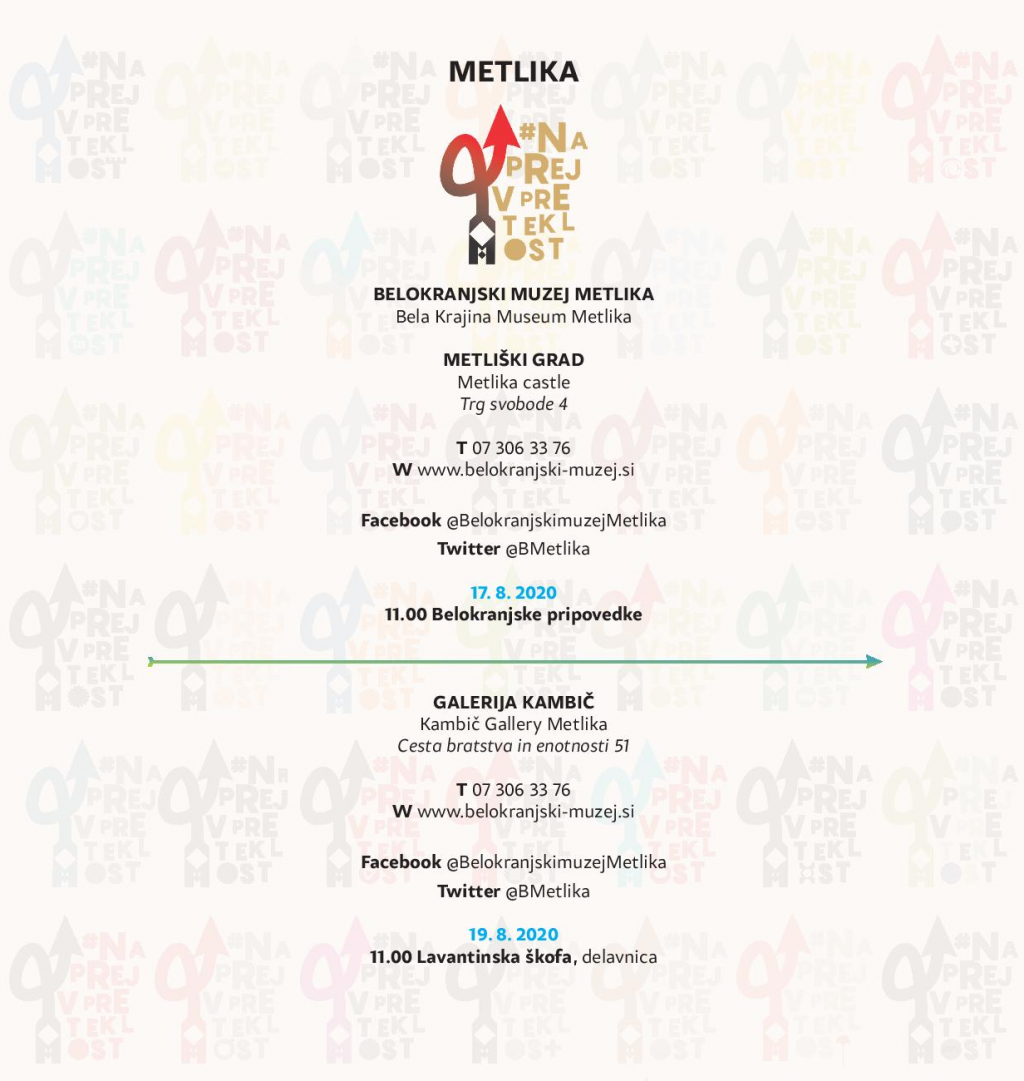 Slovenski muzeji in galerije gremo #naprejvpreteklost. Pridružite se nam na družabnih omrežjih in spletnih straneh, obiščete pa nas seveda lahko tudi v živo.